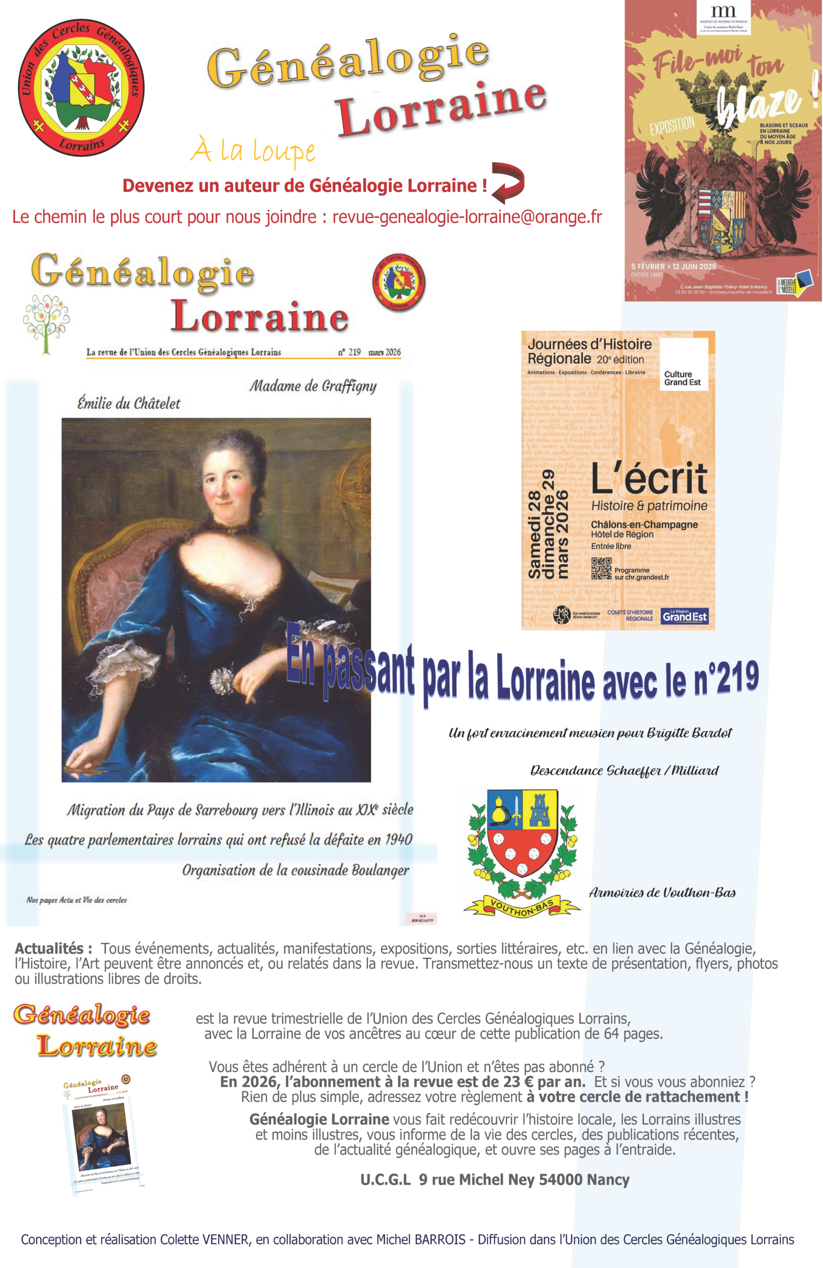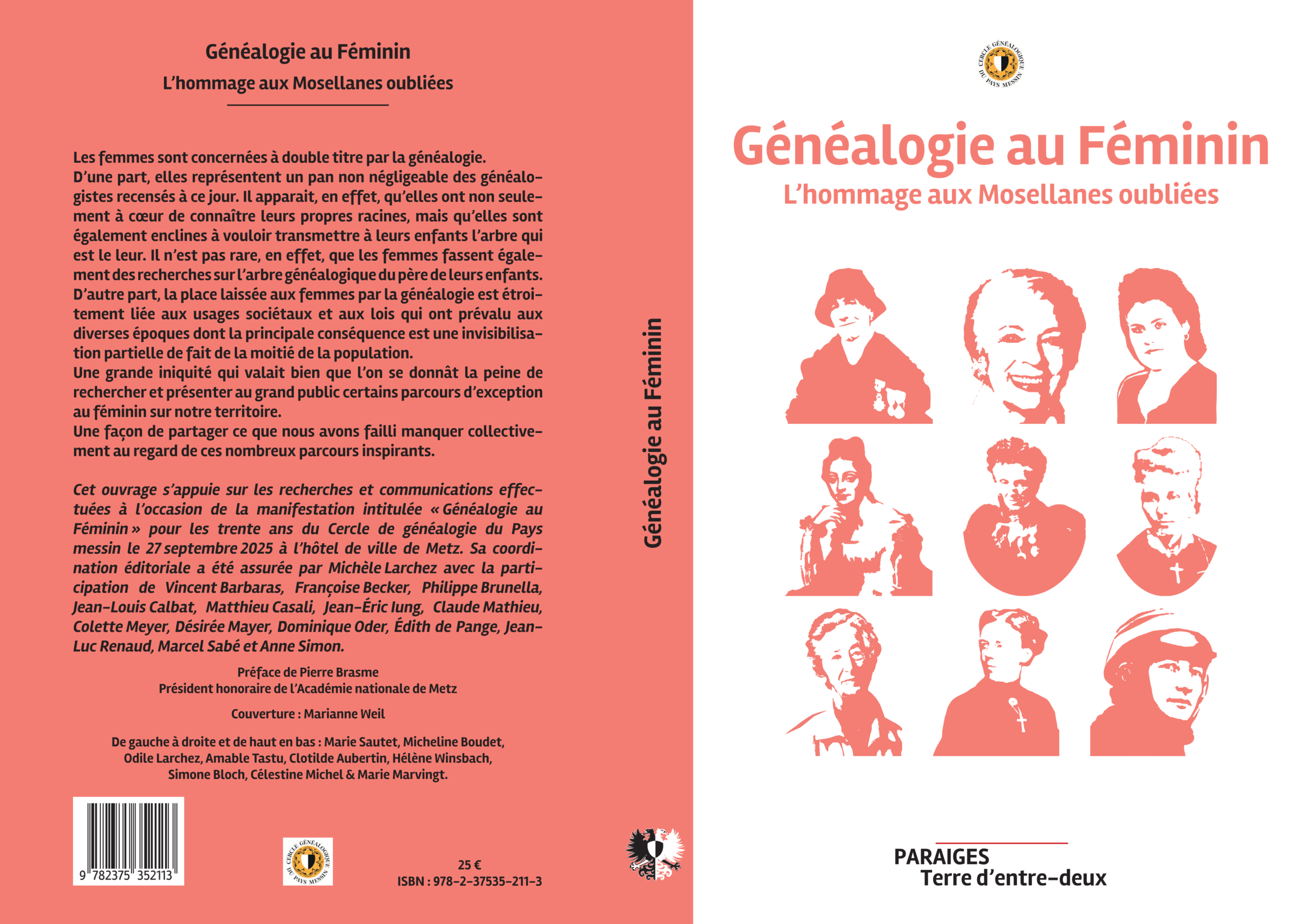 Ce livre s’appuie sur l’exposition “Généalogie au Féminin” et des conférences, tenues en septembre 2025 à l’Hôtel de Ville de Metz. Une souscription avant publication est lancée jusqu’au 31 mars à 20 euros le livre, au lieu de 25 euros, prix public après le 1 avril.
